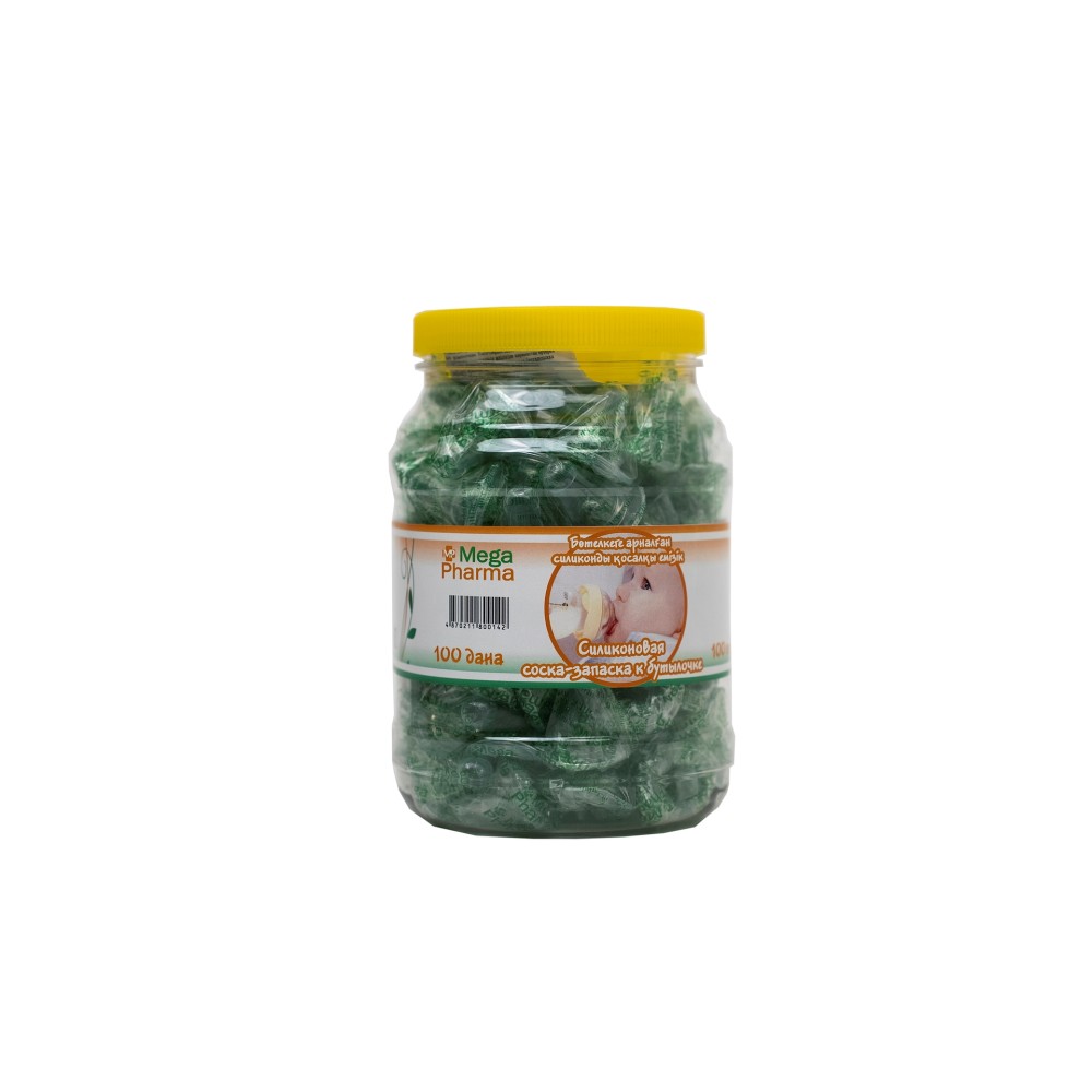 Соска-запаска на бутылку силиконовая "Mega Pharma" в баночках 260₸