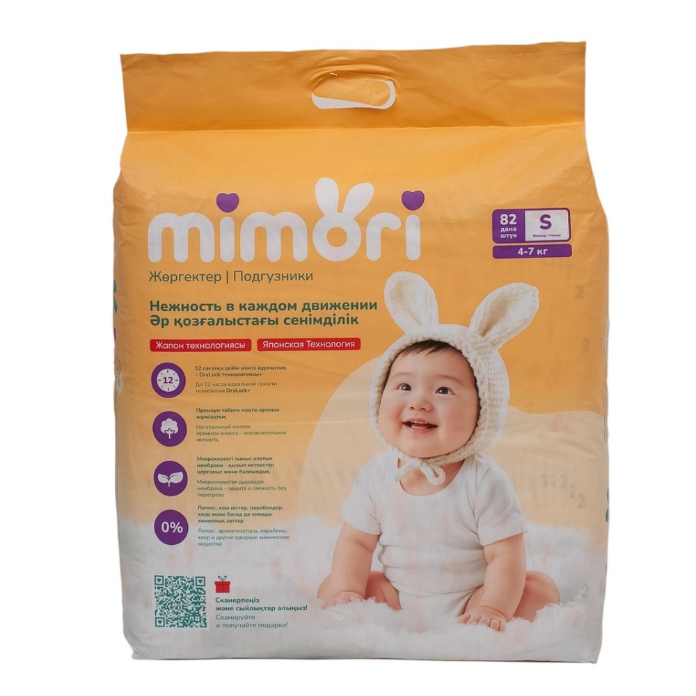 Подгузники Mimori S (4–7 кг), 82 шт — ежедневный комфорт и японская надежность