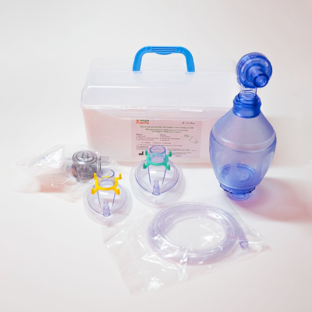 Мешок для ручной ИВЛ "M-OXYGEN", типа "Амбу", педиатрический, одноразовый (ПВХ) — предназначен для проведения искусственной вентиляции лёгких у детей. Используется в экстренных ситуациях, в отделениях реанимации, педиатрии и при транспортировке пациентов.
